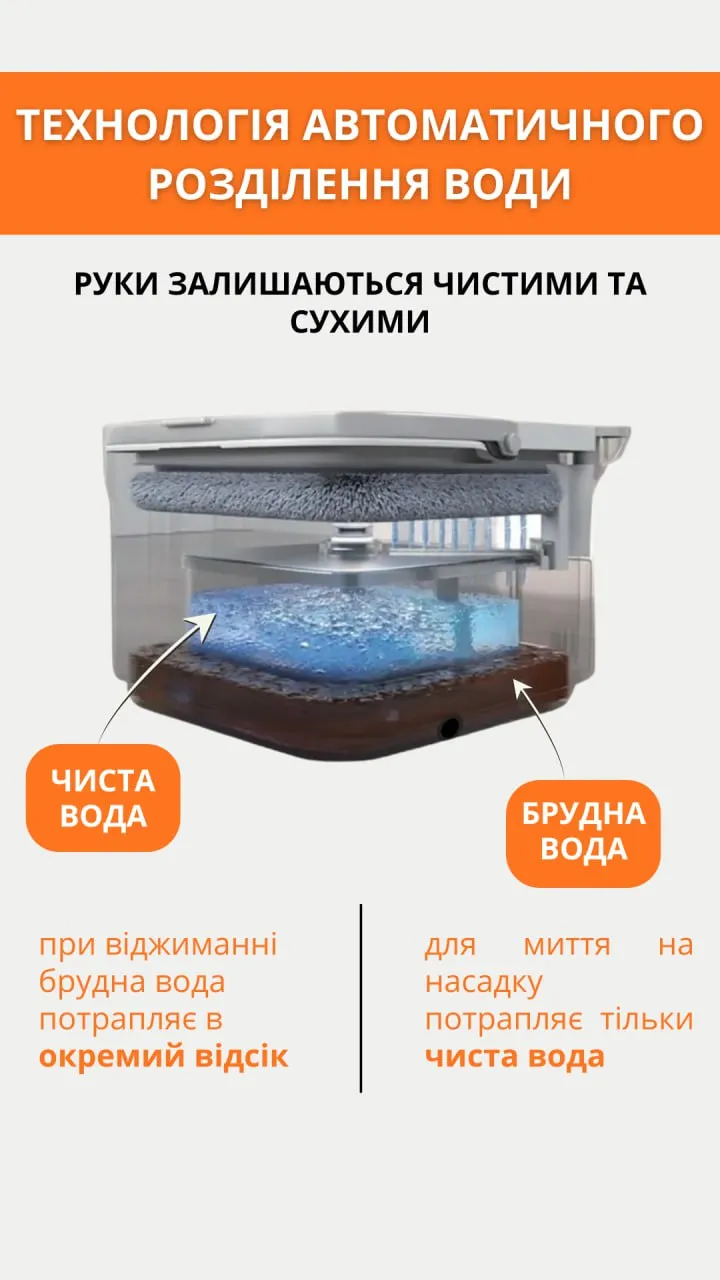 Швабра з віджиманням та відром - це ідеальне рішення для сучасних господинь, які люблять чистоту, і економлять свій час.